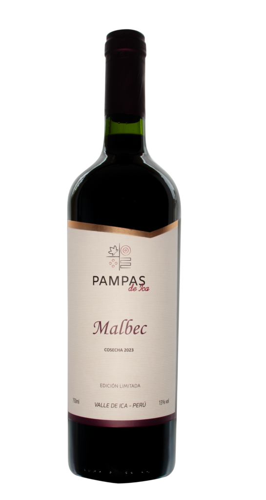 Vino elaborado con uvas Malbec cosechadas a mano en el valle de Ica. Edad del viñedo 10 años.